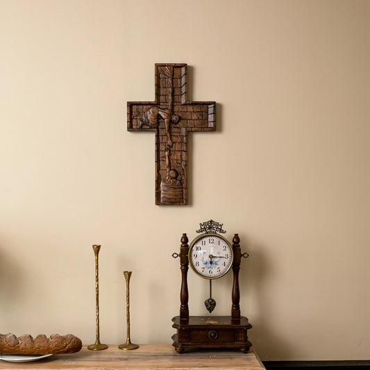 Hand-Carved Wooden Wall Cross – Jesus Christ the Savior | Christian Home Decor & Baptism Gift