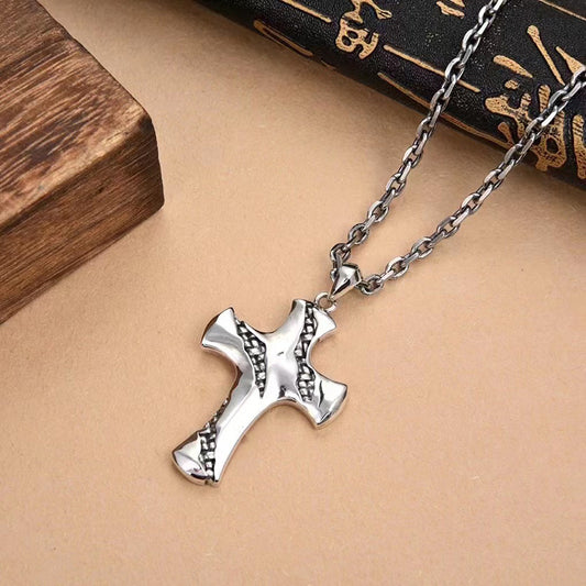 Sterling Silver Fission Cross Pendant – Geometric Faith Necklace (Optional Chain)