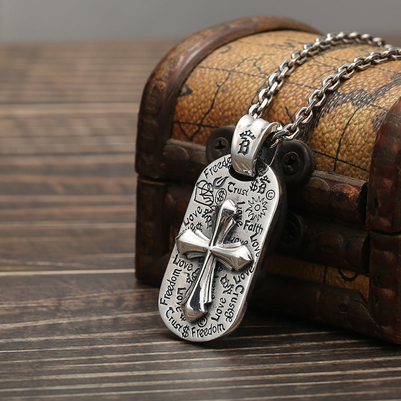 S925 Pure Distressed Thai Silver Cross Necklace For Men